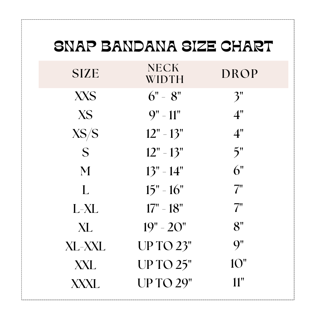 - Snap closure, adjustable snaps are added to ensure a secure and comfortable fit for even the wildest pets! There are buttons on each side of the bandana you push together until you feel them “snap.” Some prefer this method because there is no excess fabric behind pets neck.