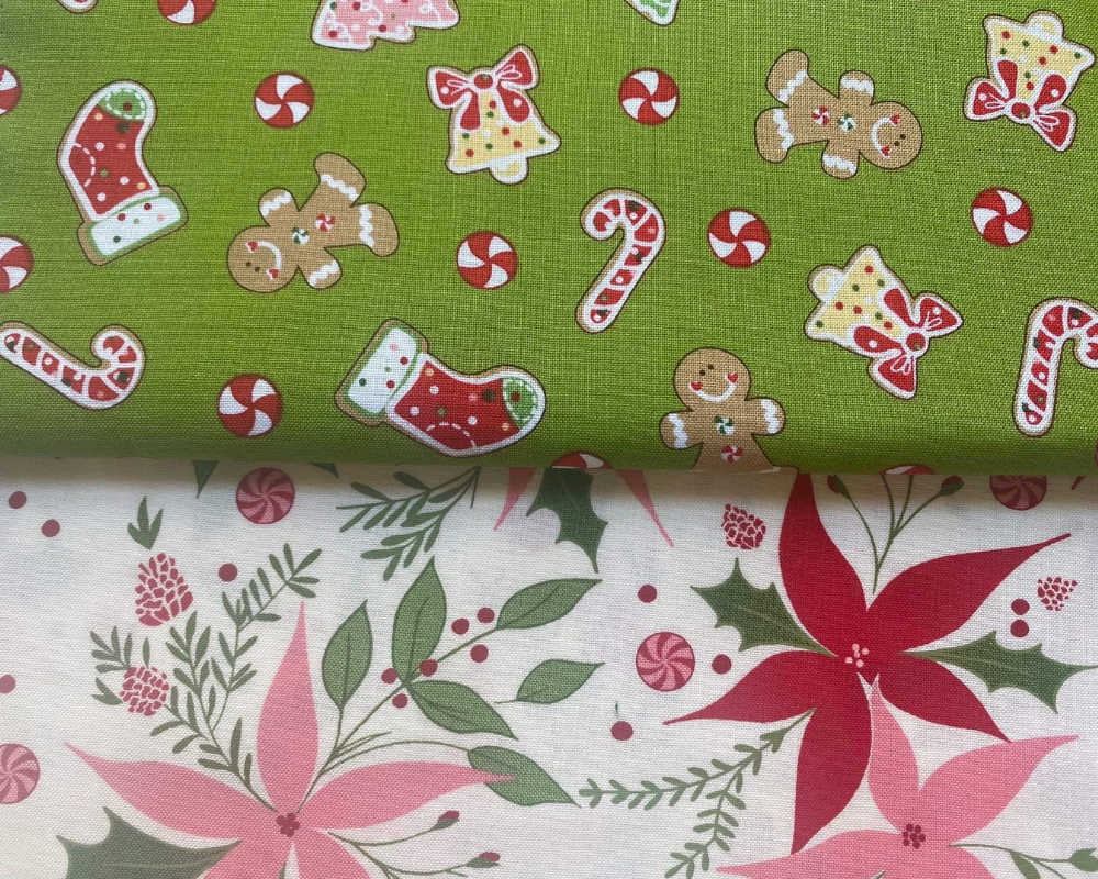 9. Christmas mix on green with poinsettias
