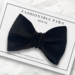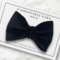 The Gentleman's Bow tie is handmade using velvet material and interfacing is applied to hold its shape. The back of the bow features an elastic design that keeps it securely in place on the collar.